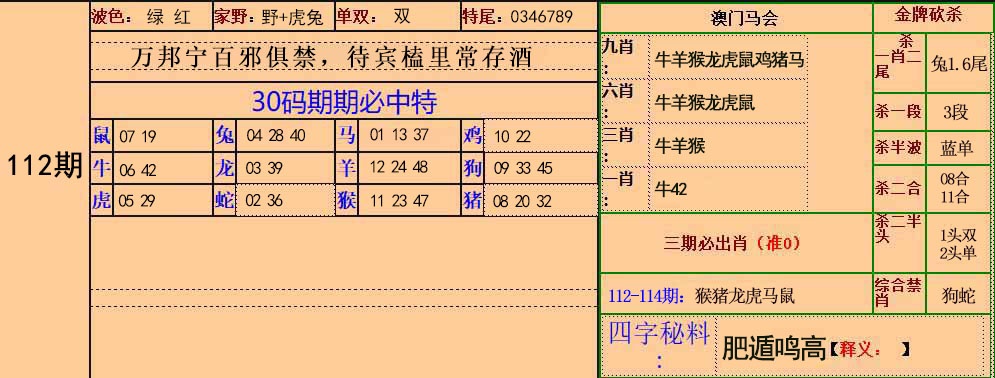 112期: 澳门管家婆 『宝宝平特图』已更新